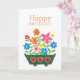 Une jolie carte d'anniversaire au design coloré de "fenêtre-box", d'un collage en papier peint à la main par Judy Adamson. Le lettrage est en rose et l'intérieur est laissé vide pour votre propre message.