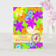 Une carte d'anniversaire de mariage à offrir à celui que vous aimez. De fabuleuses fleurs 'op art' de couleurs vives. Une carte vibrante qui dit 'HAPPY!' Les fleurs multicolores sont éparpillées sur un fond vert. La carte est laissée vierge pour être utilisée comme carte de note, ou pour votre propre message, Voir toute la gamme de cartes dans ma boutique. Tous les droits d'auteur sur l'œuvre sont détenus par Norma Cornes.