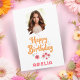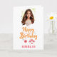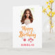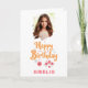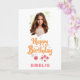 Célébrez un anniversaire spécial de fille avec cette carte personnalisée de charme! Doté d'un design floral dessiné à la main, joyeux texte "Joyeux Anniversaire" en écriture orangée, et d'une photo et d'un nom personnalisés. Idéal pour les filles, nièces, petites-filles ou amis.