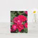 Cette jolie carte à fleurs montre quelques fleurs rouges sur leur buisson avec leurs feuilles cireux verts autour d'eux.