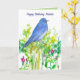 Une carte nommée faite sur commande de joyeux anniversaire décorée d'un oiseau bleu lumineux sur un plante de sagebrush avec les fleurs sauvages colorés dans se mélanger rose et pourpre dans le feuille dessiné avec l'encre et peint avec l'aquarelle. Vous pouvez éditer le texte pour adapter vos besoins.