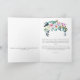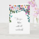 En tête fleurie avec des fleurs colorées, dont beaucoup de nuances de rose et de vert à un bleu violet clair. Citation à gauche à l'intérieur et à droite à l'intérieur message de salutation avec un bouquet floral similaire au dessus.