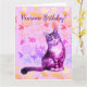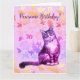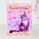 Peinture aquarelle d'un chat aux longs poils, fleurs en arrière-plan, Joyeux Anniversaire !