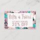 Cette aquarelle rose et turquoise girly et chic avec de l'or rose imprimé par faux et rougissent les illustrations florales roses impriment, se réfèrent un ami que la carte de référence de remise est parfaite pour l'entrepreneur à la mode et élégant. Cette carte de regard à la mode et professionnelle est la manière parfaite de montrer vos clients que vous vous inquiétez de leurs affaires. Customisez cette carte pour n'importe quelles affaires, juste éditez le texte et ajoutez vos propres détails personnels.