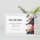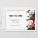 Cette carte Save the Date présente d'élégantes typographies serif et des fleurs audacieuses aux couleurs profondes. Cette carte sophistiquée offre une esthétique chic qui complète parfaitement votre suite de faire-part de mariage, assurant à vos invités de marquer leurs calendriers avec style.
