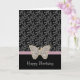 Fleurs florales noires chic art blanc avec papillon brillant diamant (image)