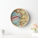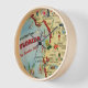 Une image vintage et rétro de carte postale de l'État de Floride fait une grande horloge murale. Vous pouvez l'acheter tel quel ou modifier la couleur du cadre et la couleur de la main de l'horloge.