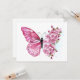 Flower arrangement of pink butterfly with rose Japanese cherry blossoms on white background.