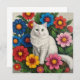 Carte Fluffy Chat blanc et Fleurs d'Art folklorique