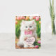 Dégustez votre mère avec cette adorable carte de fête des mères à l'aquarelle avec un chaton blanc et moelleux assis dans un champ de tulipe vibrant. Le chaton porte une minuscule cravate d'arc rose et porte un signe en forme de coeur avec "Bonne Fête des Mères" écrit en élégant cursif. Parfait pour les amoureux de les chats et tous ceux qui apprécient les motifs doux et fleuris. Un moyen de montrer votre amour et votre appréciation!