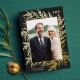 Ce carte photo de vacances moderne dispose d'un cadre feuillage dessiné à la main en feuille d'or sur un arrière - plan chic presque noir. La typographie est classique et élégante. Toutes les couleurs sont personnalisables - couleur arrière - plan, couleur texte, même la couleur feuille. Ajoutez le facteur "wow" avec une vraie carte de vacances en papier peint cette année !