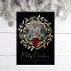 Véritable couronne de fêtes, sur une photo circulaire. Joyeux Noël en lettres de papier peint avec votre nom et votre année. Choisissez votre couleur de feuille : or, argent ou or rose, et couleur de fond. Ajoutez d'autres photos à l'arrière ou écrivez un message.