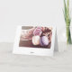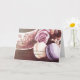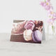 French macarons with a cup of tea and a rose greeting card featuring words : "There is no trouble so great or grave that cannot be much diminished by a nice cup of tea" a perfect vent for tea lovers, or for mothers day.