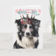 Le destinataire de cette carte est sûr d'avoir des rires quand elle reçoit cette noble salutation mettant en vedette un Collie de Frontière dans une couronne féminine, alors que c'est juste la cerise sur le gâteau d'anniversaire.