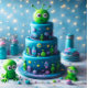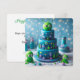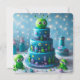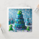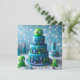 GÂTEAU D'ANNIVERSAIRE EN COUCHES THÉMATIQUES ESPACE ET ALIEN MIGNON SUR LE DEVANT DE LA CARTE. COPIE ENTIÈREMENT ÉDITABLE AU VERSO.