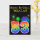 Carte Fun Fireworks + Rainbow Motif "53" Anniversaire #