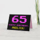 La façade de cette carte de voeux amusante, geek et naïve d'anniversaire avec un grand nombre de "65" et le message "HAPPY BANTHDAY", couleur rose, avec un nom de destinataire jaune et audacieux personnalisé. Le texte s'inspire de celui des classiques jeux vidéo 8 bits et des graphismes de jeux informatiques des années 1970 et 1980, et le arrière - plan est noir de couleur. L'intérieur comporte un message de salutation d'anniversaire personnalisable, ou peut-être pourrait-il être effacé et laissé vide si un message doit être écrit à la main à la place. Une carte d’anniversaire personnalisable comme celle-ci pourrait être une façon amusante d’envoyer un message pour célébrer le soixante-cinquième anniversaire de quelqu’un. [~Z0000478]