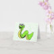 Cette carte de notes a un serpent vert et jaune souriant amusant avec de grands yeux blancs sur un arrière - plan blanc avec des pois verts vibrants.