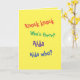 Cette drôle de carte d'anniversaire tardive a une blague de frappe qui commence, Knock frappe. Qui est là ? Aida. Aida qui ? — Vous devrez lire l'intérieur pour voir ce qu'il dit d'autre. — Les lettres sont ludiques, amusantes et colorées, sur un arrière - plan jaune. Vous pouvez les changer si vous voulez. — À l'intérieur de la carte de voeux dit Joyeux anniversaire tardif. Vous pouvez ajouter votre propre message personnalisé avec l'outil de texte. Appuyez sur le bouton personnaliser ou personnalisez pour ajouter plus de mots. — Voyez plus d'humour voitures retardées et d'anniversaire au crayon d'Alina.
