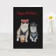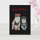 Funny cats biker. Bubba, a big, stocky cat in a red bandana, black leather vest, and sunglass. Et Missy in a leather and black and silver bandana. You can customize all of the text. You could customize it for the female, by moving the birthday cupcake and changing the text inside. You can change the background color, fonts, font sizes and colors.