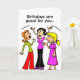 Une drôle de carte d'anniversaire avec une femme qui dit à ses amis que les anniversaires vous font vivre plus longtemps.