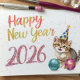 happy new year with a cute funny cat