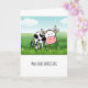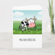 Une carte de remerciements mignonne et drôle avec une vache dans un pâturage qui dit "moochas grassias"