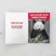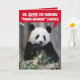 Photo of a cute panda nibbling on bamboo. She's saying, "Me, before the pandemic "panda-monium" started. Inside the mes panda has no black pour around her eyes (or eye makeup). Her eyes look like 2 pee holes in the Snow. She's saying, "Look at moi now. No need to wear eye makeup." Alors, c'est "Sening you a smile". Hope you're staying healthy and sane." A fun card to send friends and family while we're sheltering at home.