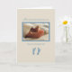 Voici une carte très spéciale pour une douche bébé très spéciale! Cette belle et touchante photo des pieds de bébé avec les empreintes de nouveau-né en bleu sera la carte parfaite pour la future mère pour son baby shower! Dans des tons neutres, les détails bleus se distinguent du petit garçon en route.