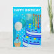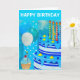 Blue Birthday Cake, ce design présente un gâteau d'anniversaire bleu et des ballons bleus en aquarelle.