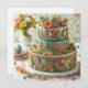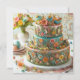 BEAU GÂTEAU D'ANNIVERSAIRE EN COUCHE COUVERT DE DÉCORATION FLEURIE À L'AVANT DE LA CARTE. COPIE COMPLÈTEMENT MODIFIABLE SUR LE DOS.