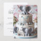 ADORABLES PETITS ÉLÉPHANTS THÉMATIQUES GÂTEAU DE COUCHE À L'AVANT DE LA CARTE. COPIE COMPLÈTEMENT MODIFIABLE SUR LE DOS.