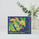 Carte postale avec une carte de la région du Moyen-Orient avec le drapeau correspondant. Les pays énumérés sont l'Afghanistan, Bahreïn, l'Égypte, l'Iran, l'Irak, Israël, la Jordanie, le Koweït, le Liban, Oman, le Pakistan, le Qatar, l'Arabie saoudite, le Soudan, la Syrie, la Turquie, le Turkménistan, les Émirats arabes unis et le Yémen