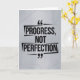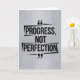 Inspire grit and consistency with this bold, modern motivational quote card. The design features the powerful phrase, "PROGRESS, NOT PERFECTION," stylized in striking black block letters with quote marks. It is set against a contemporary silver-gray background with a subtle geometric or low-poly texture, giving it a professional and crisp look. This card is perfect for business coaching, fitness encouragement, supporting someone with study goals, or as a general inspirational gift to remind them that effort counts more than flawless execution. Ideal for entrepreneurs, students, and anyone needing a reminder of the power of growth mindset.