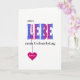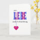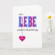 This is a pretty birthday card for a german friend or relative. The word AMOUR on the front is in blue-pink colored capital letters overlaid with a pattern of white flowers. The greeting est "Tout l'amour pour son anniversaire". A deep pink heart hang from the letter L, et this can be personalized with your preferred name or text.