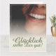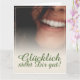 Glücklich steht Dir intestin ! Kompliment Karte mit lachendem Frauengesicht und handschriftlichen Grüßen auf der Vorderseite der Karte. Restliche Flächen stehen zur freien Verfügung.