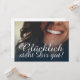 Glücklich steht Dir intestin ! Kompliment Karte mit lachendem Frauengesicht und handschriftlichen Grüßen auf der Vorderseite der Karte. Restliche Flächen stehen zur freien Verfügung.