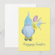 Tomte de style aquarelle mignon avec un doux bouquet printanier de fleurs sur fond jaune et texte "Joyeuses Pâques" personnalisable.