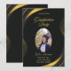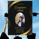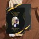 Célébrez un jalon avec notre carte de graduation moderne et élégante dans un or élégant et noir florissant. Cette carte personnalisable vous permet d'ajouter une touche personnalisée en incluant une image du diplômé, ainsi que son nom, l'endroit et l'heure de la cérémonie de remise des diplômes. Le design élégant de la carte offre un cadre parfait pour présenter les réalisations du diplômé et créer un souvenir mémorable pour cette occasion spéciale.