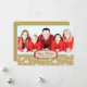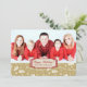 Une jolie bordure en mitaines blanches et dorées dessinée à la main est au bas de cette carte à plat modèle photo de vacances. Votre propre photo recouvre la partie supérieure, et une bannière rouge ajoute une jolie touche de couleur pour séparer les deux parties. "Joyeuses fêtes !" est la première ligne sur la bannière, avec votre propre texte en rouge correspondant ci-dessous. L'arrière de la carte est assorti à l'or solide, ce qui vous permet d'écrire votre propre message personnel, si vous voulez. Simple, festif et joli !
