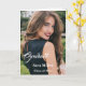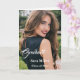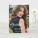Graduation greeting card is shown with a sample photo print of a person, customize edit and change the photo to yours.