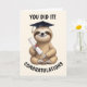 Célébrez leur grande réussite avec un sourire. Cette mignonne carte de graduation présente une paresse fièrement vêtue d'une casquette de graduation et portant un diplôme, parce que même les plus lents et les plus sombres peuvent atteindre la ligne d'arrivée. Parfait pour les diplômés de tous âges qui ont pris leur temps et l'ont fait. Qu'ils aient croisé ou rampé jusqu'à la scène, cette carte ajoute une touche ludique et légère à leur journée spéciale.