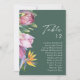 Ce graphique de chiffres de tableau vert fleuri tropical coloré est parfait pour votre destination boho moderne, vert, violet, mariage pêche. Le design présente un élégant bouquet de verdure couleur d'eau de plage classique et des fleurs qui peuvent inclure l'eucalyptus vert sauge, le mauve et la protéa rouge, l'hibiscus rose rousse, l'oiseau de paradis orange et bleu, et la feuille de palmier vert foncé. Le design est idéal pour un mariage de voyage simple, créatif et unique pour le printemps, l'été, l'automne ou l'hiver ! Veuillez trouver d'autres articles de papeterie mariage correspondants ou coordonnés dans le reste de la collection.