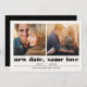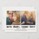Carte photo de report de la typographie graphique audacieuse contemporaine et minimale. Moderne minimaliste et super tendance changer la carte de date pour avertir votre invité vos plans de mariage sont changés. Autres couleurs disponibles