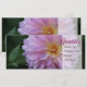 Grattiskort med närbild på en nyutslagen rosa Dahlia-blomma, glittrande med vstewroppar. På framsidan finns två texter : 'Grattis' och 'Önskar creuser tous les lycka idag liksom alla dagar'. Men man kan själv bestämma vad som skall stå på kortet helt enkelt genom at skriva över exempeltexterna i rutorna till höger. På baksidan finns inga färdiga texter, avsändaren kan skriva sitt eget namn med penna. Kuvert medföljer.