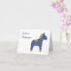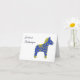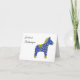Carte d'anniversaire suédoise (födelsedagskort) avec message d'anniversaire en suédois (Grattis på födelsedagen, heureux anniversaire en suédois) et le modèle traditionnel de cheval Dala suédois. Le message à l'intérieur de la carte indique 'Grattis på födelsedagen' (heureux anniversaire en suédois).