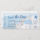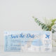 Carte d'embarquement billet d'avion destination mariage enregistrer la carte de date pour un Mariage de Santorin en Grèce avec l'emblématique église à dôme bleu surplombant la mer d'Agée et les falaises. Utilisez l'outil de conception pour quitter la conception de manière avancée, par exemple en modifiant la couleur du texte, la police et le placement, ainsi que la couleur de l'arrière - plan de carte et de l'avion. Contactez-moi pour coordonner les articles que vous cherchez, ou utilisez le "transférer cette conception" pour créer votre propre article sur Zazzle.
