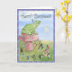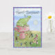 Une grenouille d'anniversaire, dans un casquette à taches bleues, est assise sur un champignon entouré d'une bande d'insectes à onze pices - chaque insecte avec son propre instrument.