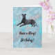 Une carte d'anniversaire pour tous ceux qui aiment les greyhounds ! Cette carte présente un magnifique lard noir avec un arrière - plan en marbre bleu et argent parties scintillant. Les messages sont personnalisables afin que vous puissiez les personnaliser.