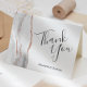 Cette élégante carte de remerciements mariage moderne est ornée d'une bordure en aquarelle gris et blanc ornée d'une parties scintillant en or rose. Le texte personnalisable combine les mots "Merci" dans le script d'écriture manuscrite gris charbon et les noms de la mariée et du marié en caractères italiques sur un arrière - plan blanc.